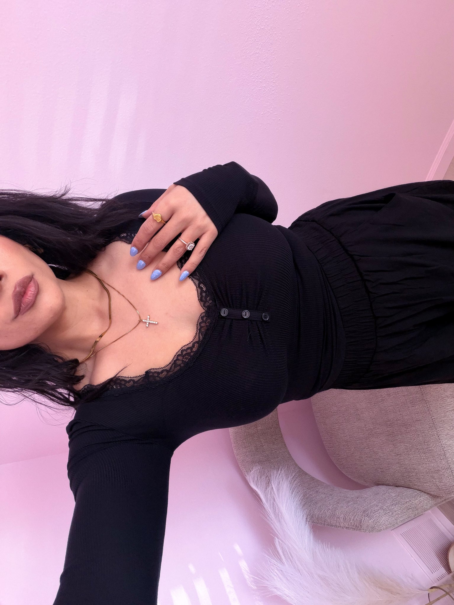 Your new soft girl everyday top. This versatile top pairs great with pants, skirts, shorts & our new track pants in baby blue & black. Truly, the cutest basic staple top for your wardrobe!
