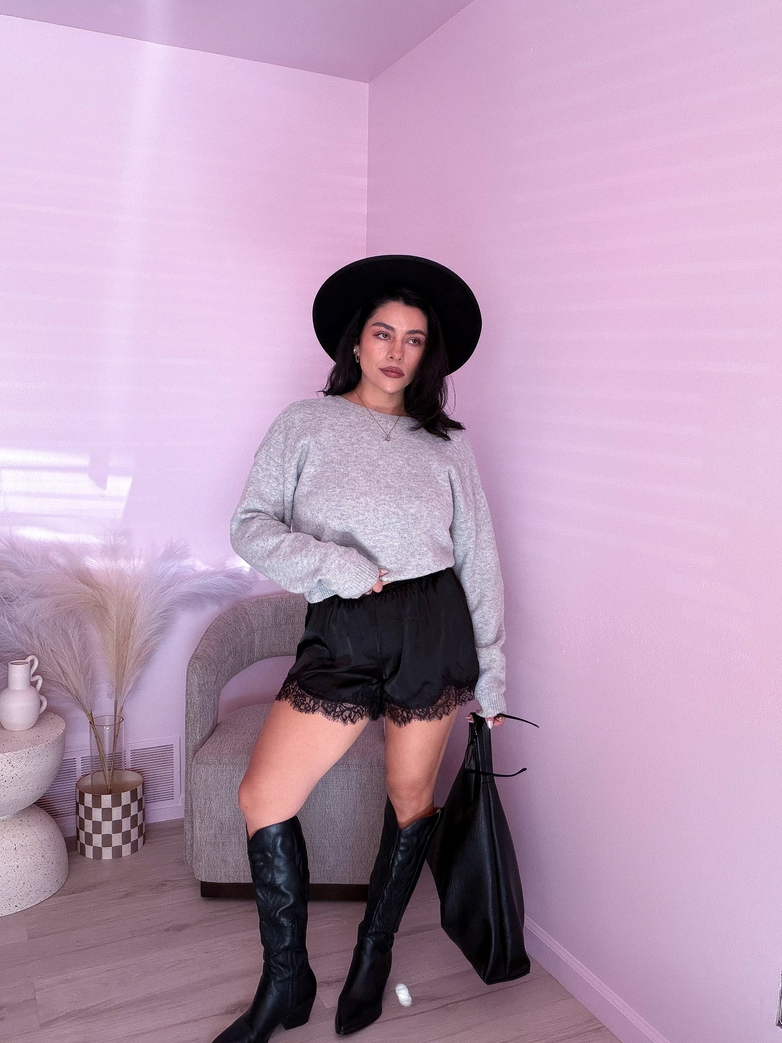 Satin Lace Shorts in Black