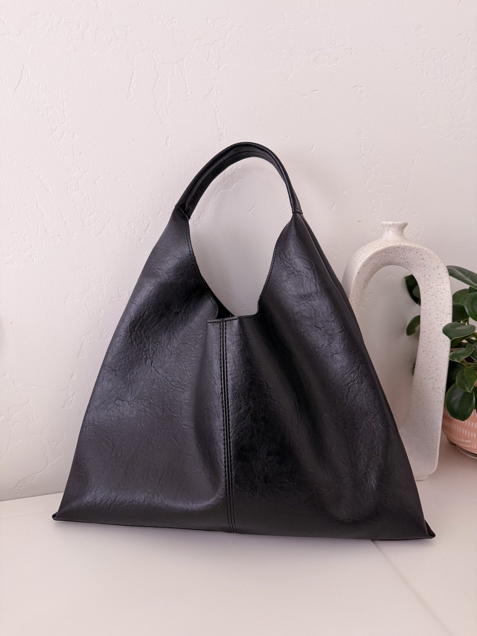 Faux leather handbag in black. Includes medium makeup bag! Insane quality- feels like real leather!