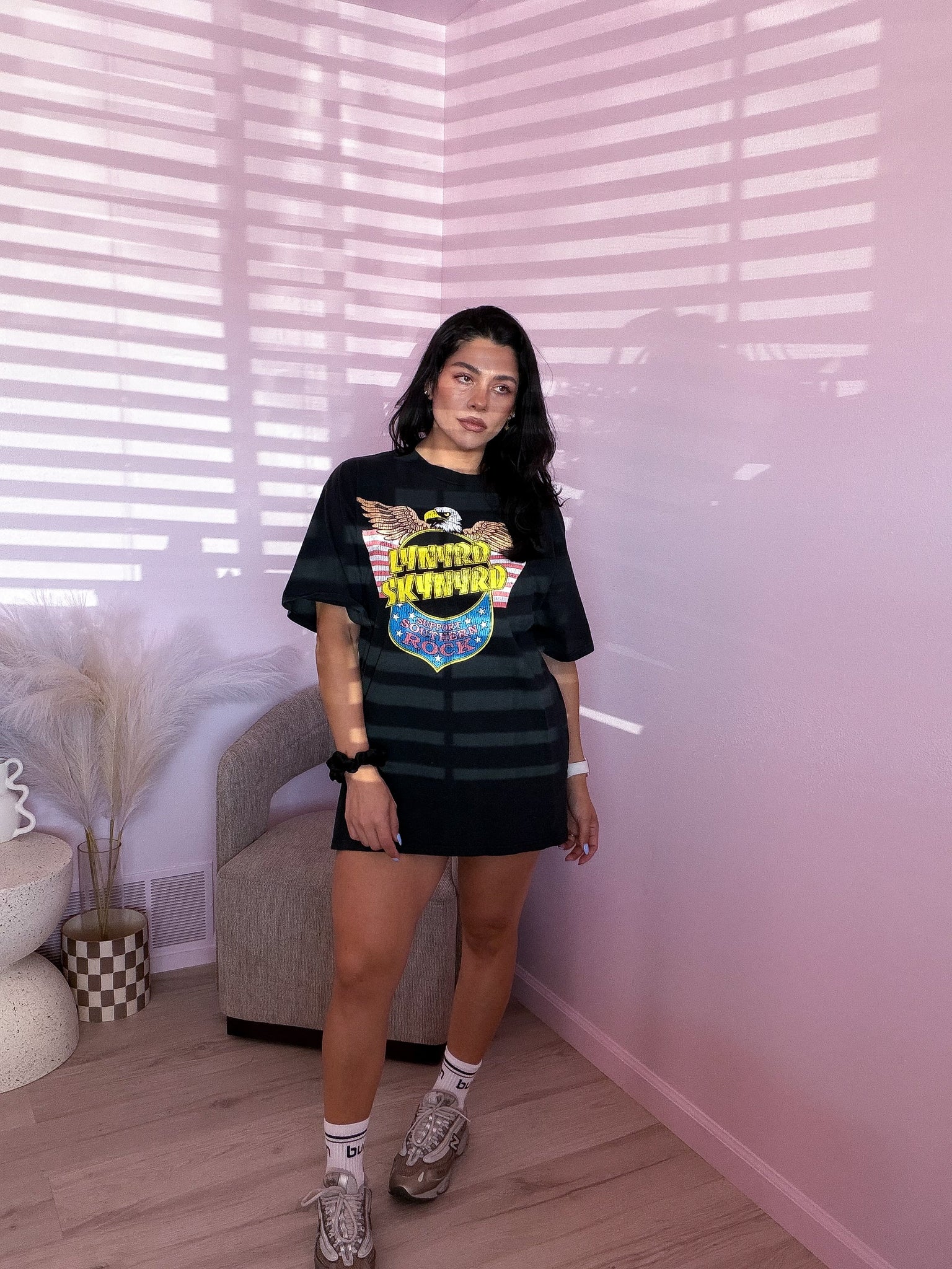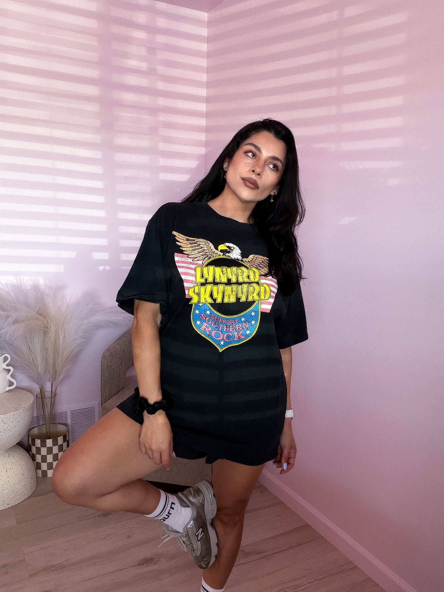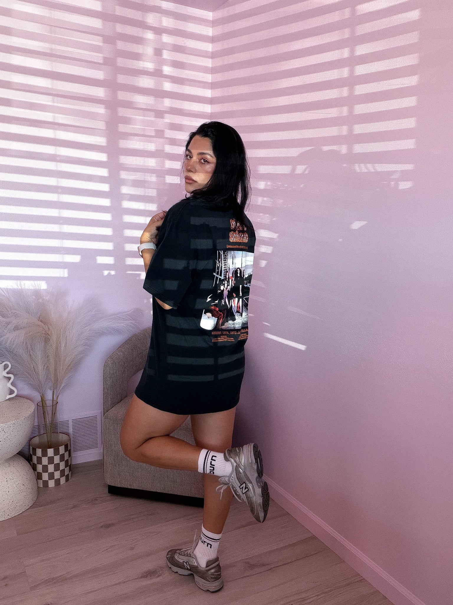 Tee has an oversized fit