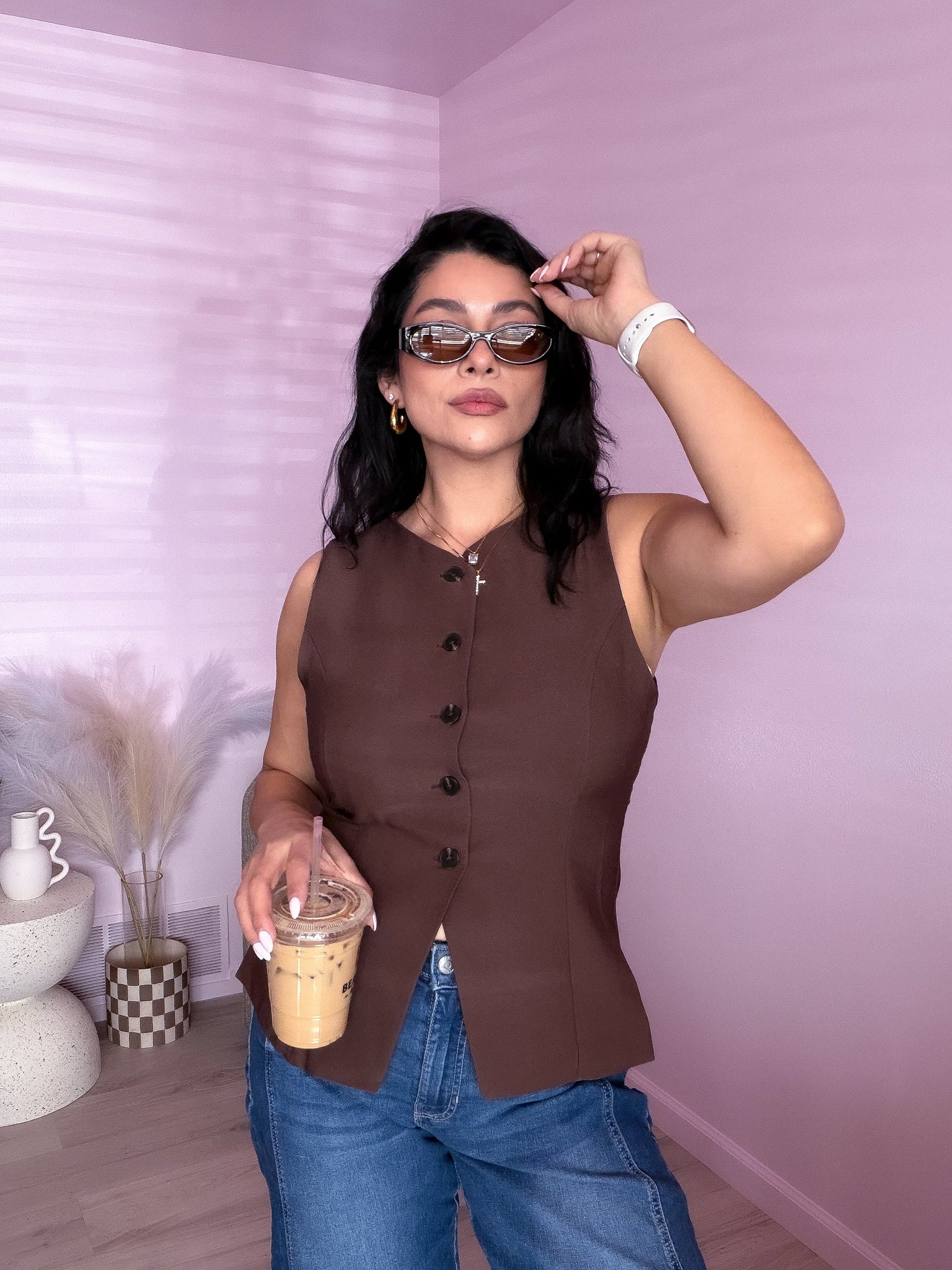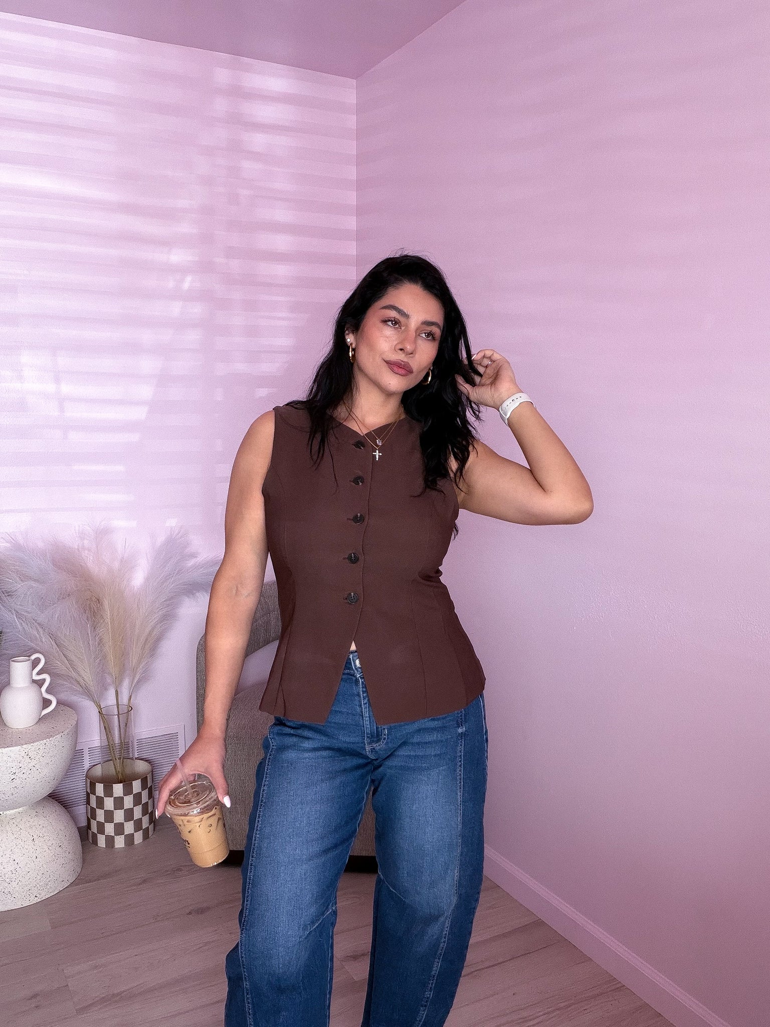 Button down long lined vest top