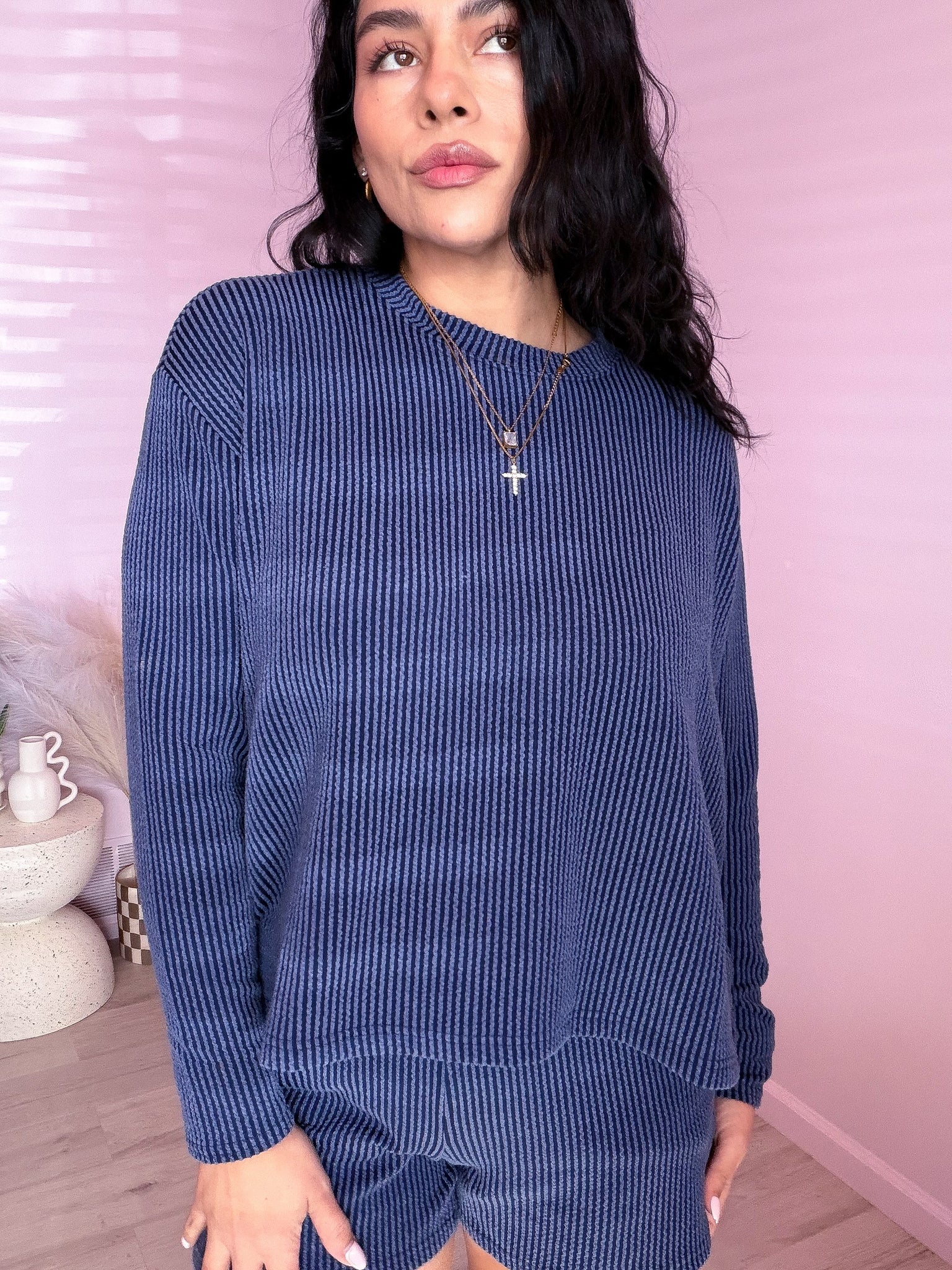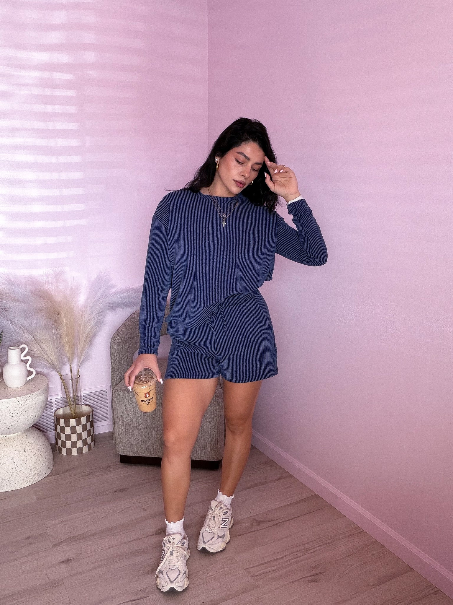 Evelia is 5’4, 40D, and usually wears a size Medium.  She’s wearing a size Small in this set (she sized down for a more fitted look).