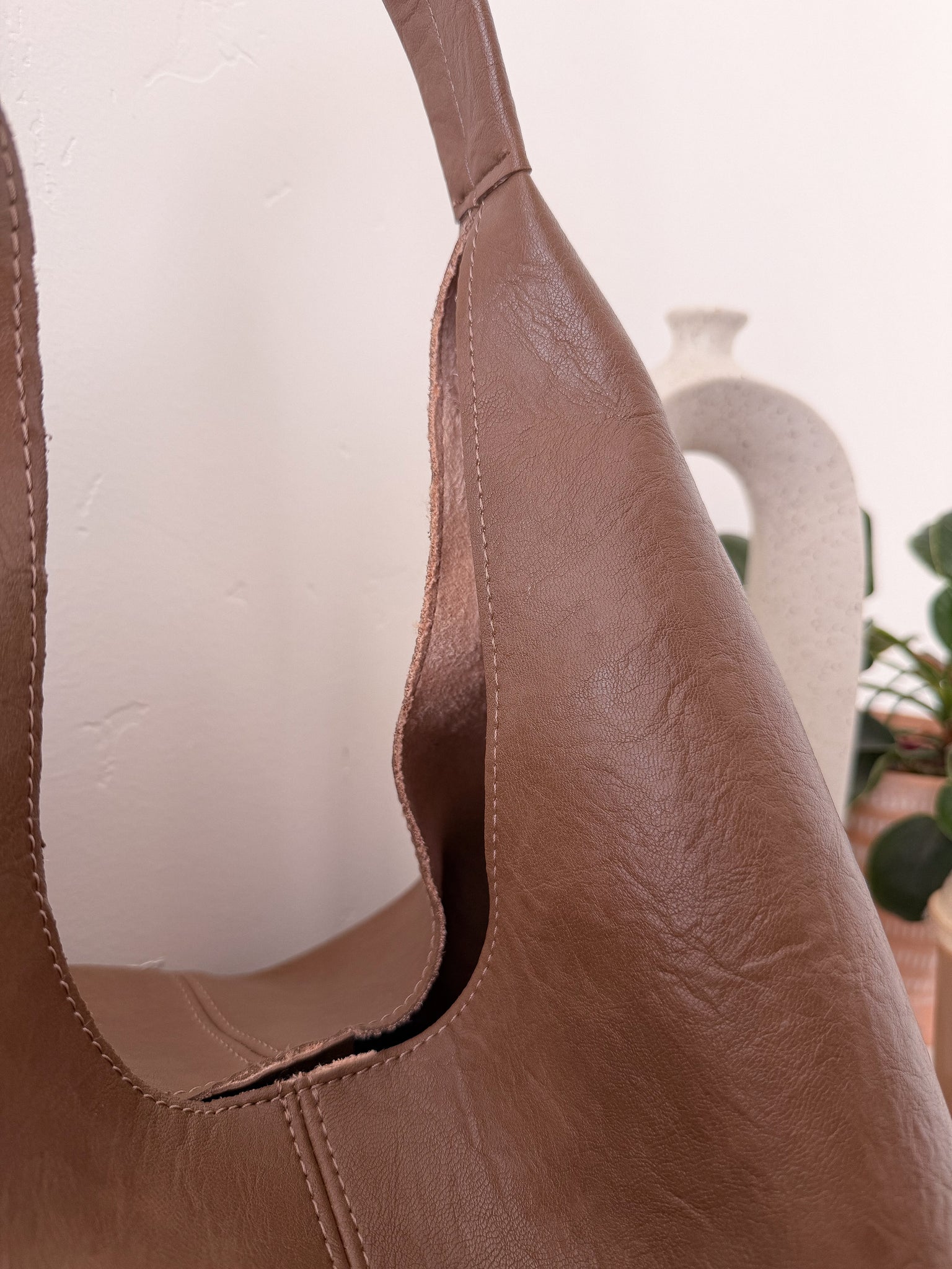 Faux leather handbag in mud coffee. Includes medium makeup bag! Insane quality- feels like real leather!