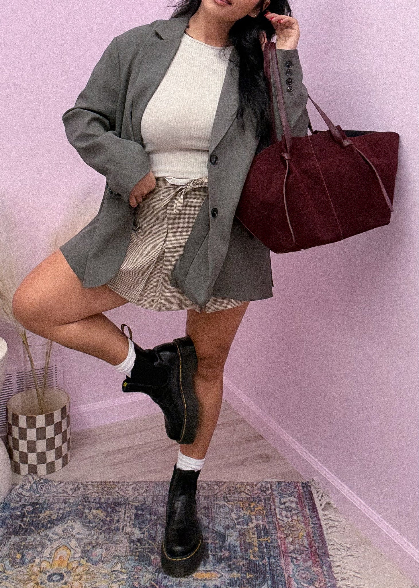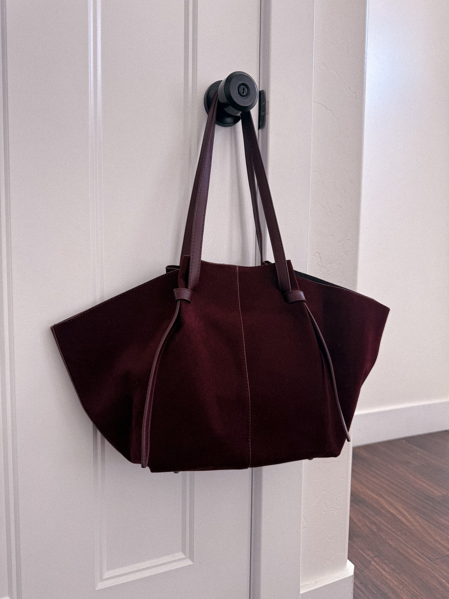 Suede/pho leather handbag in wine. Includes small makeup bag!
